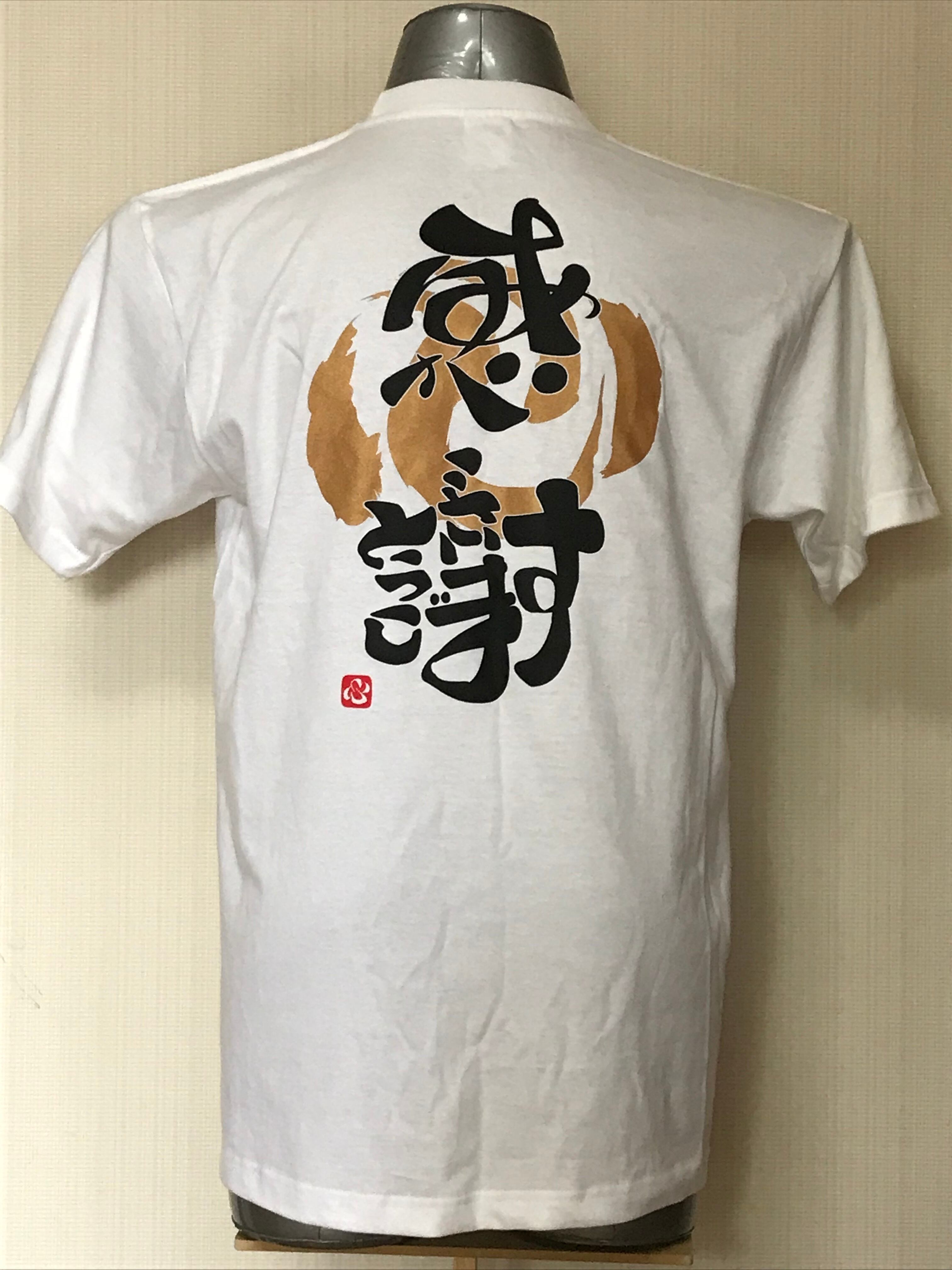 コピー:感謝ありがとうございます11(心:ゴールド)両面プリント白Tシャツ